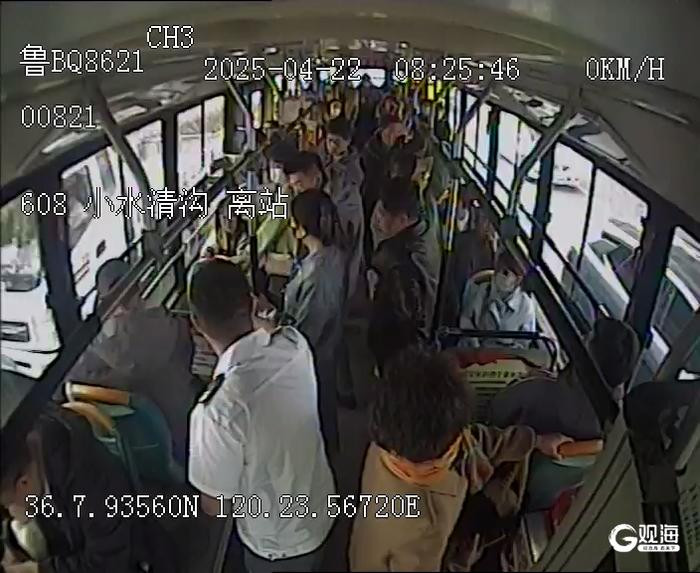 青岛日报社/观海新闻4月23日讯4月22日上午,在青岛城运控股交运温馨巴士608路公交车内上演了暖心一幕。车厢内,一名女乘客因低血糖突然瘫倒在座位上,幸得周围乘客和驾驶员刘万旭的及时相助,最终化险为夷。